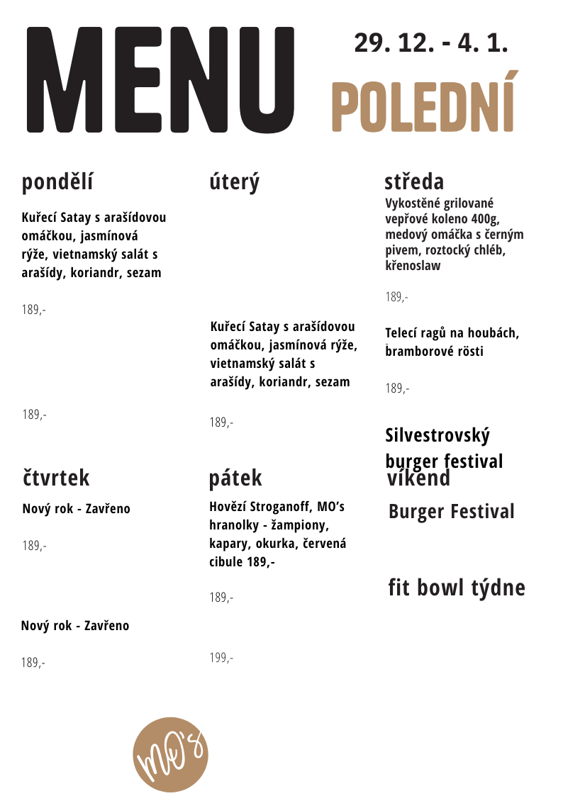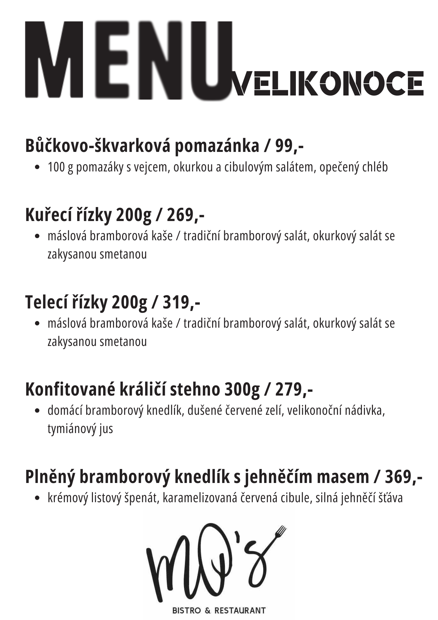 Zažijte nezapomenutelné Svatomartinské menu v MO's Bistru! Připravili jsme pro vás výjimečnou svatomartinskou husu s poctivými přílohami, které dokonale vystihnou kouzlo tradičních chutí. Těšte se na autentický gurmánský zážitek, na který budete dlouho vzpomínat.
